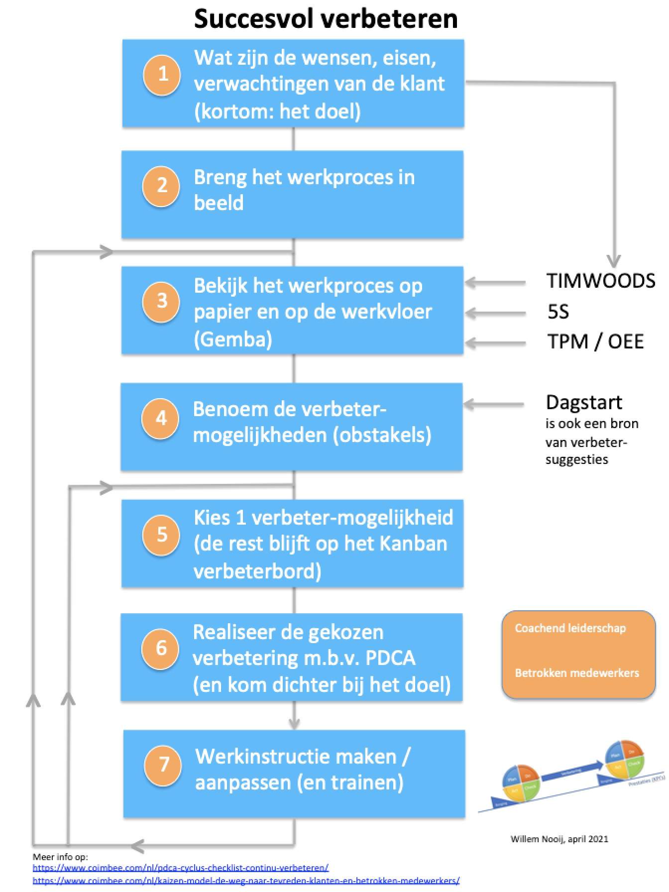 Verbeteren is een proces dat tijd, toewijding en een gestructureerde aanpak vereist. Het is niet iets dat je ‘erbij’ doet, maar een kernactiviteit die aandacht verdient. Als je er geen tijd voor maakt, leer je het nooit, en zonder de juiste ondersteuning zal het proces uiteindelijk vastlopen. Topmanagement speelt hierin een sleutelrol door niet alleen het belang van verbeteren uit te dragen, maar ook actief te ondersteunen en ruimte te creëren voor teams om te leren en te groeien.